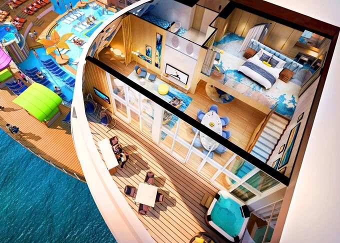 RL - Royal Loft Suite 141 m² + balkón s vírivkou 78 m². 2-podlažný apartmán. 18. paluba. Max 6 osôb. Výhody Royal Suite Star Class. 10 816 € 5 408 € za osobu