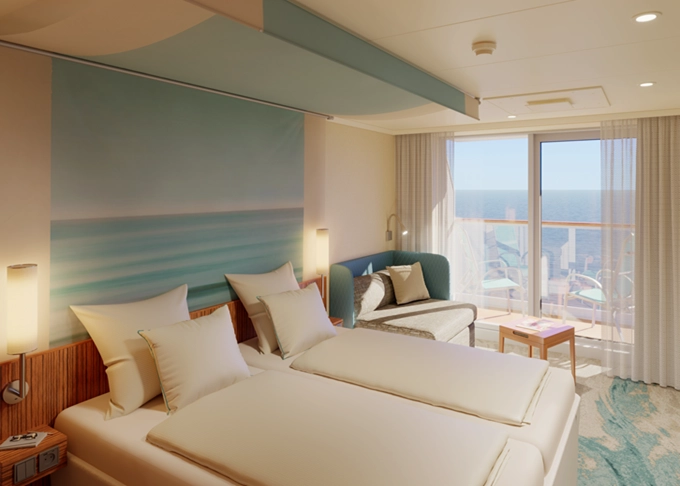 SD - Junior Suite PREMIUM od 24 m² + balkón 10 m². 7,8,9. paluba. Max 4 osoby. Cenový model Premium + výhody Junior Suite. 3 150 € 1 575 € za osobu