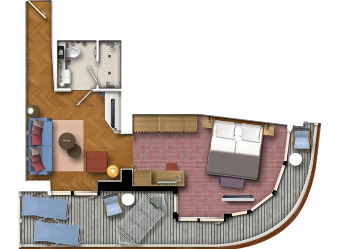 | SKSO - Übersee Suite 40 m² + balkón 9 m² s ležadlami a hojdacou sieťou. 14. paluba. Max 4 osoby. Výhody Suite. | 16 596 € 4 149 € za osobu | ||