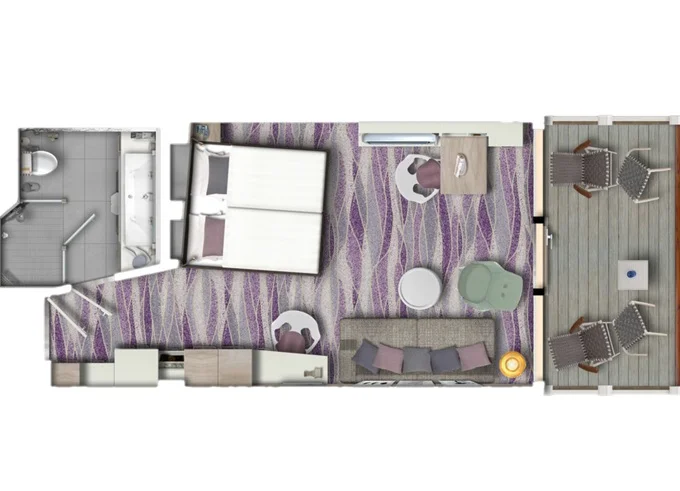 | JKAO - Junior Suite s balkónom 26 m² + balkón 7 m² so stolom. . paluba. Max 4 osoby. Výhody Junior Suite. | 12 198 € 6 099 € za osobu | ||