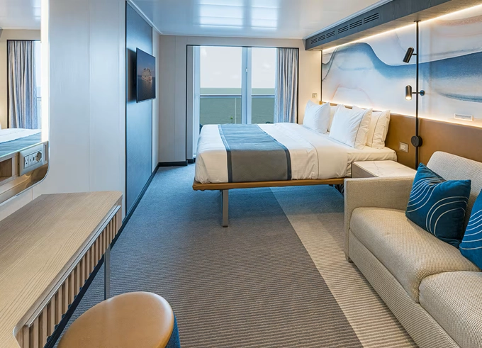 | MB - Club Suite Forward-Facing s balkónom 22 - 25 m² / balkón 7 m². 9. až 13. paluba - vpredu. Max 2 osoby. Výhody Club. | 5 564 € 2 782 € za osobu | ||